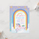 A rainbow arch creates a border for a fun flying unicorn and easily customise all the Birthday party details. Shooting stars and clouds surround the rainbow and create cute a pattern on the back