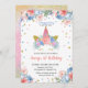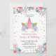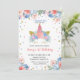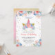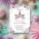 Magical Unicorn Rainbow Pink Floral Birthday Invitation