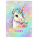 This magical clipboard features a lovely Unicorn with an aqua mane against a rainbow background. Designed in purples, lavenders and pinks with glittery sparkles and personalised with your name. Perfect for school or home. Makes a great gift for girls of all ages!