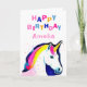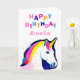 Magical Unicorn Stars Girl Happy Birthday Card. This beautiful and magical card is perfect for a special birthday girl. The card features a cute, beautiful unicorn drawing and colorful stars. Personalize the card with your name.