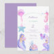 Dive into a whimsical underwater celebration with this enchanting watercolor mermaid 2nd birthday invitation! Featuring adorable mermaids, a charming seahorse, a playful octopus, and a cute starfish, this customizable design is perfect for your little girl's special day. The soft pastel purples, pinks, and teals create a dreamy ocean atmosphere, sure to delight guests. Personalize all the party details for Rebecca's "Mermaid Our Little" milestone. Ideal for an "under the sea" or mermaid-themed second birthday party. Easy to customize and print on high-quality Zazzle cardstock. Make a splash with this unique and memorable invite!