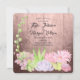Pink, lavender, and pale green watercolor succulents on a with a rustic peach background and fairy lights for a magical desert day or night wedding.