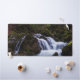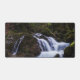 Long exposure photograph of a waterfall with beautiful green foliage and moss.