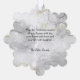 Elegant and unique snowflake-shaped photo template with gold faux glitter border on white marble texture with gold sparkly veins and white snowflakes. Back features complementary background graphic and editable text fields.