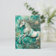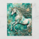 A magical white unicorn on a teal watecolor background with cream flowers fantasy AI generated art