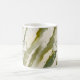 Original art mug featuring an abstract painting in green with flowing waves and light sparkles and your (optional) custom texts.