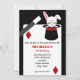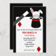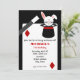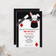 A birthday invitation for children featuring an illustration of a rabbit coming out of a top hat at top right. Magic wand at left. Personalise the red and black text over playing card with details of your occasion.