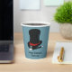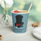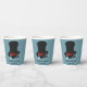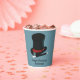 Add your own custom message to create personalised party supplies for magic show themed birthday parties and other special events. These paper cups feature an illustration of a black and red magician's hat and a black and white magic wand set against a light blue background.
