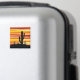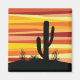 Abstract geometric desert sunset illustration with yellow, orange and red diagonal stripes and cactus decoration. Add your name/monogram or delete the text.