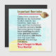 Excellent quality magnetic tile, not too thick, sits nicely on the front of my dishwasher and lets people in my household know if the dishwasher has been unpacked or not. Very handy to have in a busy household. Very clear and precise printing on the front of the magnet, exactly as is shown in the picture.