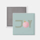 This modern unique Christmas magnet design with the word Joy on a soft aqua coloured background brings a gentle smile to your face. The pastel pink Christmas ornament replacing the letter O mixes a hint of vintage to this modern minimalist design. The letters are a light sage colour that reminds us of nature and makes the magnet more versatile for a variety of settings. Wherever it goes, it reminds us that the holiday season can have moments of calm simplicity and peaceful rest.