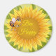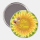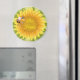 This large round magnet is shown with a cute sunflower Bee Happy Bee print.