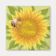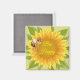 This square magnet is shown with a cute sunflower Bee Happy Bee print.