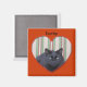 Black cat against tan, red and green striped background (replace with your image). Frame is a heart shaped wire cut into a red foreground. Personalise with name at top.