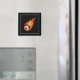 This square magnet is shown with a art print of a flaming football.