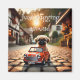 Magnet mit Mops und Mini Morris mit Text "Just pugging around"