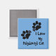 Paw prints and text on blue background. Left and right prints of polydactyl (seven toes) cat. Text beneath reads "I Love My Polydactyl Cat"