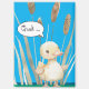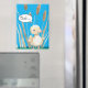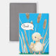 Small yellow duck on the lake in the reed blue sky in the background - rectangular magnet