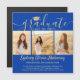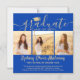 Share the joy of a high school or college graduation with custom 3 photo collage royal blue and gold square magnetic announcements. The pictures and wording on this template are simple to personalise, and the colours are easy to change with the Zazzle design tool. Include any details of your choice, such as party invitation info, special honours, degree title, favourite inspirational quote, graduate's contact info, or plans for the future. The magnetic backing makes them easy for family and friends to display. The modern design features a faux foil mortar board cap, elegant script calligraphy, traditional typography, and three photos of your choice, such as senior pictures or images from the commencement ceremony. Please note that gold is printed colour, not metallic foil. This chic magnetic graduation card is a stylish and unique way to announce a special day celebration. Congratulations to the graduate!
