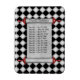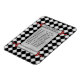 Flexible and magnetic Birthday Reminder to keep on your fridge, dishwasher or other metal surface. Such a thoughtful little gift idea to include with your other holiday giving. Don't forget to grab one for yourself. Grey and black chequered pattern background with red accents on rolled scroll. Just customise the place holder text here with your own family names and birthdays. There is room to add a few more, or delete some entries if there are too many. There are two sizes for available and a variety of colours and patterns to choose from.