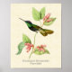 Vintage natural history illustration by Antoine-Germain Bevalet, c. 1874, of a Magnificent Hummingbird (Eugenes fulgens.) A green and gold hummingbird perches on the branch of tropical thibaudia plant with bright pink blossoms, on a light golden yellow parchment texture background. Digitally cleaned and enhanced while still retaining its vintage characteristics. Features common and scientific names in decorative fonts. Sized to fit standard frame.