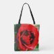 Magnificent red rose with morning dew drops tote bag