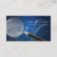 This proofreader business card features a magnifying glass over an abstract blue smoke background. A block of text appears within the convex curve of the magnifying glass. Customise it immediately with your own name and contact details.