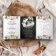 Magnolia Blush Pink Floral Wreath Black Wedding Tri-Fold Invitation