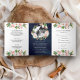 Magnolia Blush Pink Floral Wreath Navy Wedding Tri-Fold Invitation