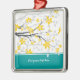 Magnolia branch and yellow flowers turquoise custom ornament.