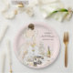 Watercolor bride in wedding gown and magnolia flowers. Choose hair colour and background colour to personalise your event.