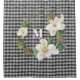 Magnolia Floral Black and White Check w Monogram Shower Curtain