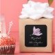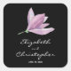 Magnolia Floral Wedding Favour on Black Square Sticker