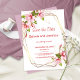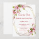 Elegant floral save the date wedding card featuring soft magnolia flowers and a modern geometric frame. This design is perfect for romantic spring or garden weddings and works beautifully for classic and floral wedding themes. The card is customisable with your names, wedding date, and location.