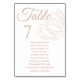 This elegant blush floral table number 7 seating chart is the perfect addition to your wedding reception. Featuring a delicate outline of magnolias in a soft blush hue against a crisp white background, this chart adds a touch of romantic sophistication to your event. The large, clear table number '7' ensures guests can easily find their designated area. Below the table number, a list of guest names is displayed in a complementary blush font, guiding attendees to their seats. This design is ideal for couples seeking a classic yet modern aesthetic for their special day, seamlessly blending with a variety of wedding themes and color palettes. Make your wedding planning a breeze with this beautifully designed seating chart.