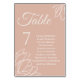 Elegantly guide your guests to their seats with this beautiful table number card, featuring a delicate blush background adorned with exquisite white magnolia floral line art. The minimalist design incorporates the table number prominently, along with a space to list your honored guests. This table card is perfect for adding a touch of sophisticated charm to weddings, anniversaries, or any special event seeking a refined aesthetic. The soft color palette and graceful floral illustration create a memorable impression, ensuring your event's seating plan is as stunning as the occasion itself.