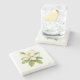 The coasters are gorgeous, a quality feel and heavy weight. They look like a precious archeological find. A rustic stone juxtaposed with a modern floral black and white print. I like the way the print goes slightly imperfect on the cut stone edges giving them a kind-of natural beauty.