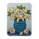 A stylised, vibrant floral painting of beautiful magnolia flowers in a beautiful vase on a magnet by Lisa Lorenz