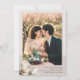 Wedding save the date cards with minimalist design. Add a large photo of the couple to vertical 5x7 inch paper. The only design is white magnolia flowers (southern magnolias) in the lower corner. Background and frame colour is pink-beige, with grey, printed text beneath the photo for date and location of event. Reverse is solid pink-beige. Perfect for announcing a southern themed wedding. Also, purchase as an instant download to share digitally.