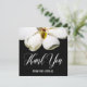 Beautiful square thank you card for a memorial service featuring a close-up photo of a magnolia on one side with thank you written beneath in a lovely script and your family name beneath that in modern letters. A printed thank you message on the other side, signed by your family and personalised with your loved one's name and years living. Express your gratitude for the comfort and support you received during a difficult time with this elegant magnolia sympathy thank you card. The floral sympathy thank you card features a beautiful magnolia flower, a symbol of peace and hope, and a printed thank you message on the back.