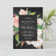 Magnolia Pink Floral All in One Black Wedding Invitation