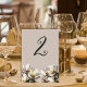 Southern magnolia wedding reception table number cards with number on both sides. White magnolia flowers make a border along the bottom of pinkish beige colour cards. Fill in a number using the template and it will automatically print on both sides. Add the card to your cart, click on the card, in your cart to go back to the product page and enter a different number - add to your cart - and so on for as many numbers as are needed.