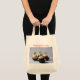 The printing came out very well, better than I had anticipated. The natural color fabric is sturdy with strong seams and comfortable handles. This tote fits easily over my shoulder. As it is filled, the bottom flattens out--very cool! I would buy this product again. This grocery tote holds a lot of groceries! The image quality was very good. The colors were a little darker than I had expected. The darkness may have been due to printing on a natural color fabric rather than on white. The cat design is attractively centered on the tote. The spirit of the design is very lively, just as it appears on the Zazzle website.