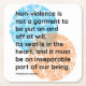 Non-violence is not a garment to be put on and off at will. Its seat is in the heart, and it must be an inseparable part of our being. - Mahatma Gandhi Non-violence Quotes
