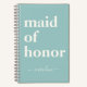 Simple Minimalist Modern Personalised Robin's Egg Blue Maid of Honour Notebook