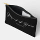 This chic, simple maid of honour black cosmetic bag features your name underneath elegant white typography. Customise these elegant, modern bridal party gifts for your wedding events like the bachelorette party.