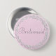 Pretty pink and white lace border "maid of honour" button to be worn at bridal shower or bachelorette party.