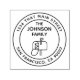 A return address stamp with a mailbox doodle and address arranged in a round text format. Personalise with your return address.