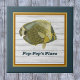 This vintage image of Chaetodon reticulatus, commonly called the Mailed Butterflyfish or Reticulated or Black Butterfly Fish, is a cheery addition to your kitchen nor living area. Customise the text to add your name or message. Make sure to personalise the text where indicated. It's bordered in a complementary gold, orange, and deep teal blue. A similar tile with a triggerfish with similar colours is also available.