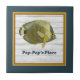 Mailed Butterflyfish in Teal and Gold with Name Ceramic Tile